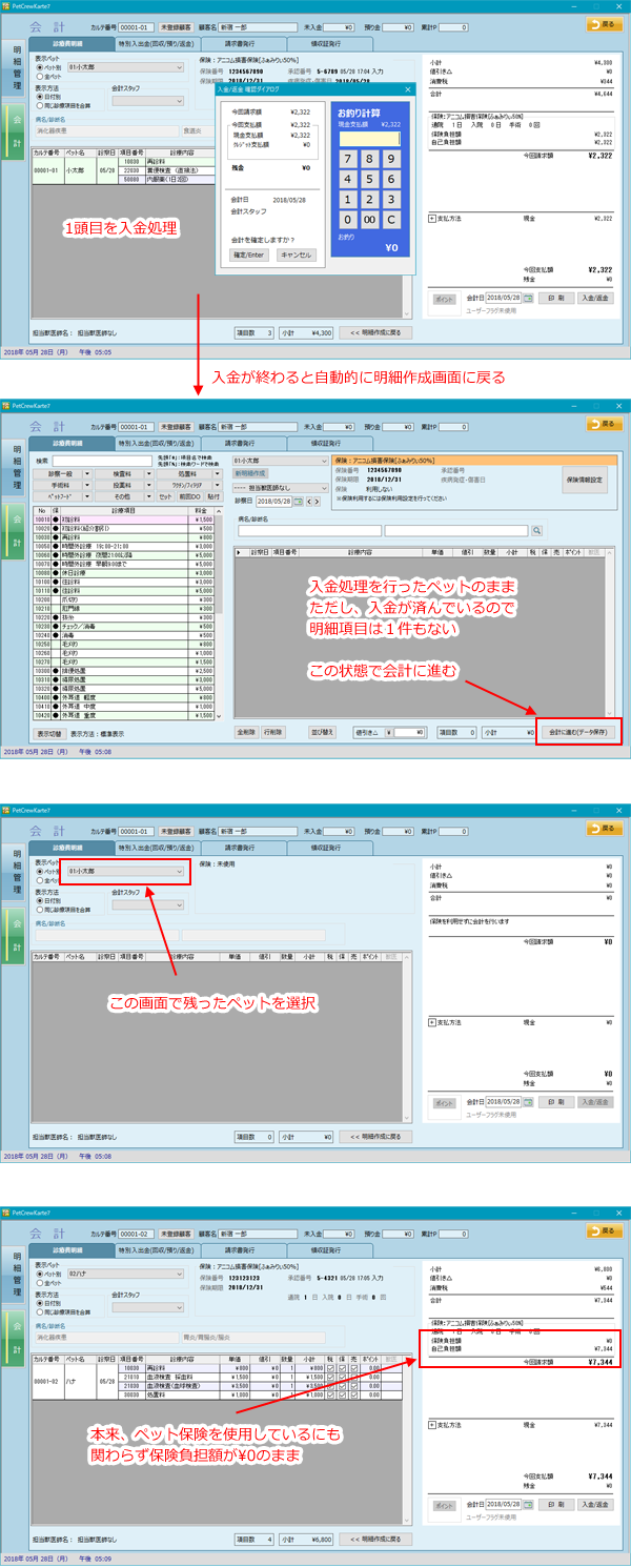 明細作成画面で毎回ペットを選択していれば、今回のような入金になることはありません。