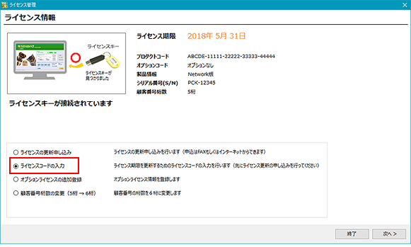 新しいライセンスコードを入力して[登録]ボタンをクリックします。