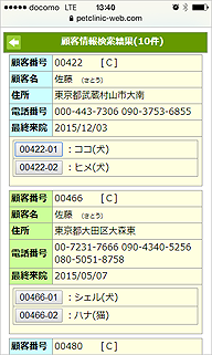 - 顧客名やペット名、電話番などの複合検索